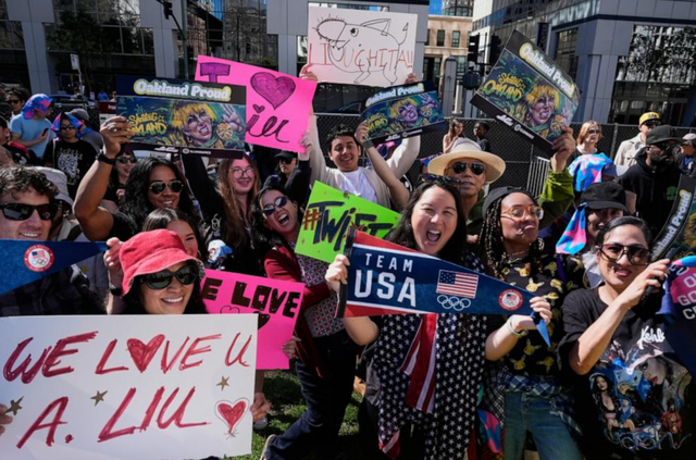 北京时间3月13日,据美国ABC新闻报道,美国花样滑冰运动员艾丽莎-刘在赢得奥运金牌三周后,于当地时间周四在加利福尼亚州奥克兰受到了家乡英雄般的欢迎。艾丽莎-刘(也就是刘美贤)成为自2002年以来首位获得冬奥会花样滑冰金牌的美国女性,奥克兰市政厅前举行了集会庆祝刘美贤的胜利。
